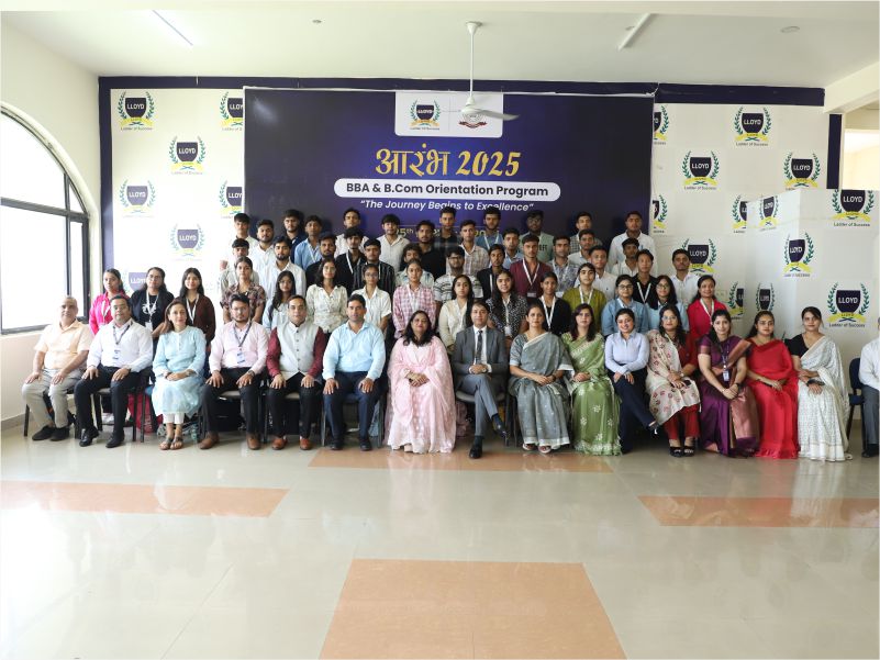 The orientation program for the BBA and B.Com batches (2025–28) of Lloyd Group of Institutions, titled AARAMBH 2025, spanned four insightful days from 25th to 29th August 2025. This meticulously designed programme aimed to prepare students for their academic journey, provide exposure to industry insights, and instill in them the values and ethos of Lloyd.