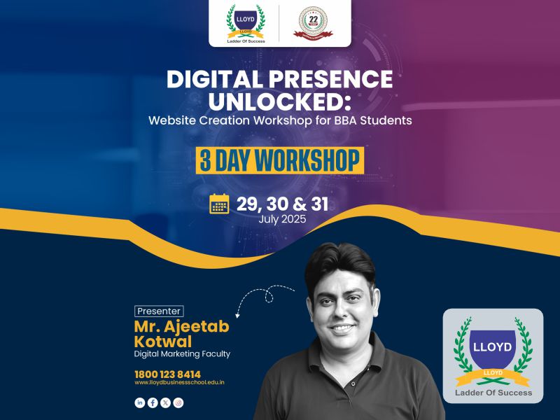 On July 29,30,and 31 2025 , the Lloyd Group of Institutions organised a special workshop on “Digital presence unlocked: Website Creation”. The resource person was Mr Ajeetabh kotwal, Digital marketing faculty Lloyd Business School.